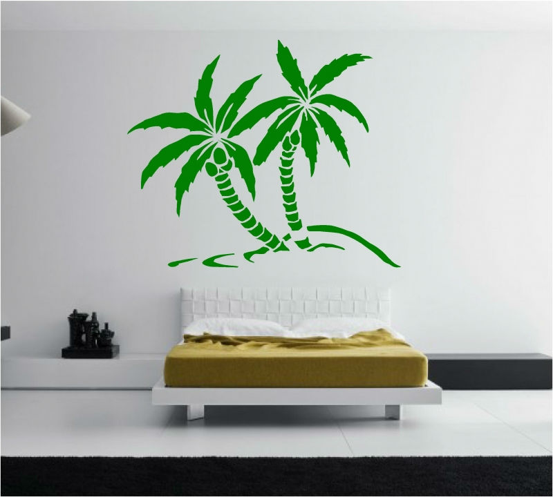 Sticker decorativ palmieri. Un sticker decorativ care va va destinde si va va face sa va simtiti pe o plaja exotica. Ca si la celelalte stickere decorative realizate de noi si in cazul acesta sunt disponibile o multitudine de dimensiuni si 18 de culori.
